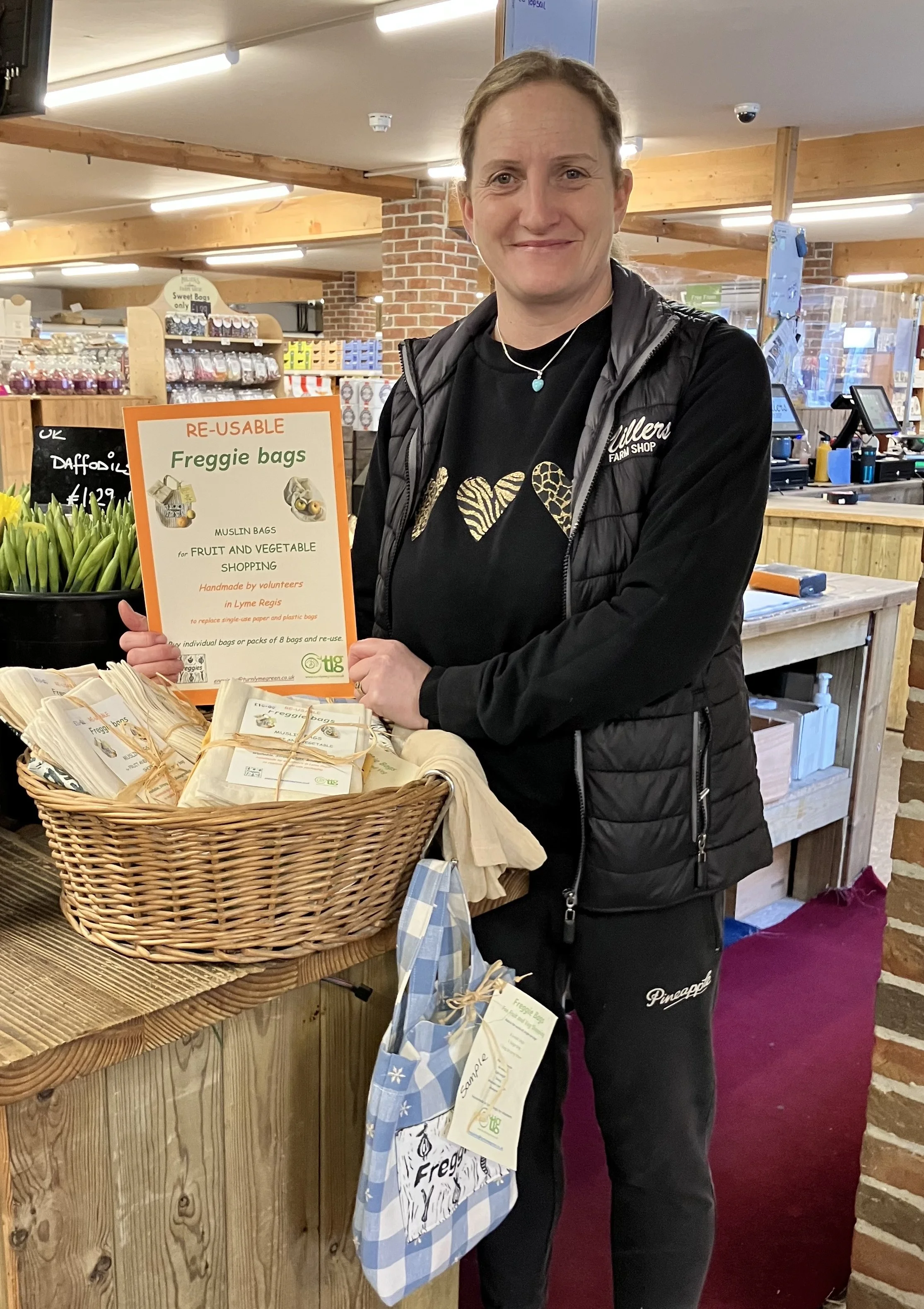 The muslin Freggie Bags are hand made in Lyme Regis by TLG’s recycle sewing group. Proceeds from the bags go towards paying for the materials and environmental projects.